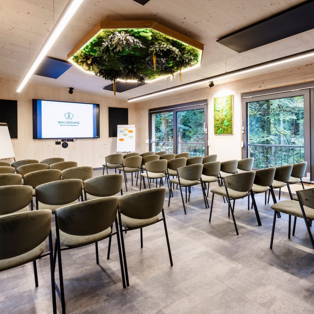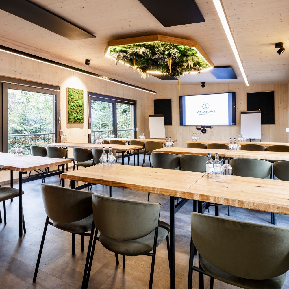 Zwischen Bäumen denkt es sich anders. Die Waldräume nutzen den Biophilie-Effekt bewusst: Tageslicht statt Neonröhren. Blick ins Grüne statt auf Betonwände. Hier arbeiten Sie konzentriert, entwickeln Strategien, lösen Probleme, weil starre Räume starres Denken fördern. Und bewegliche Architektur die Kreativität freisetzt. Deep Work funktioniert nicht im Großraumbüro. Sondern dort, wo der Kopf durchatmen kann.